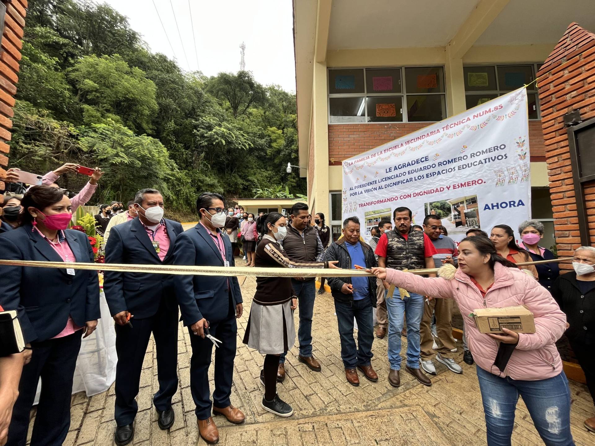 El día lunes 10 de octubre el Presidente Municipal de #Pahuatlán Lic. #EduardoRomero en compañía de personal del H. Ayuntamiento, autoridades educativas, padres de familia y alumnos, realizaron el corte de listón de la inauguración de la obra: